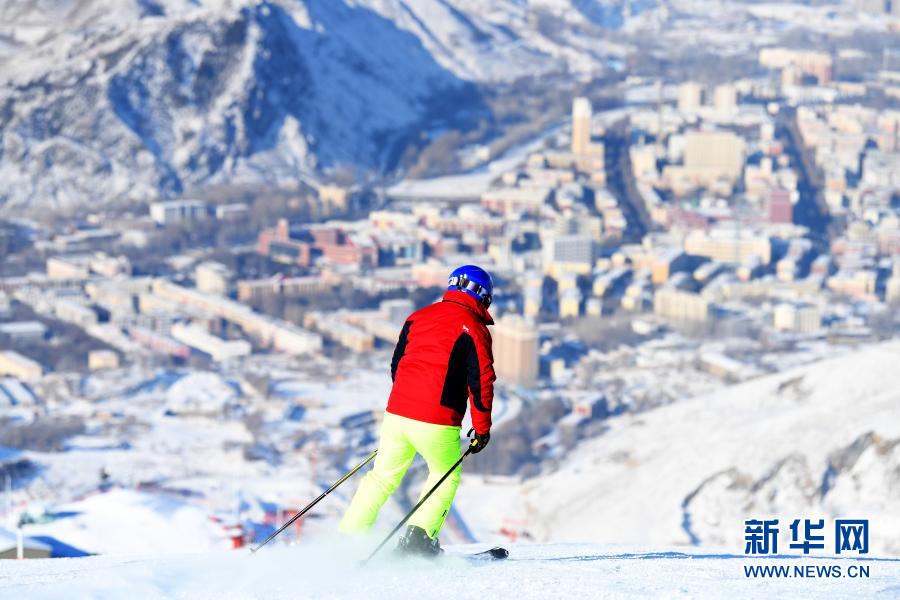 1月4日,滑雪愛好者新疆阿勒泰市將軍山滑雪場滑雪。新華社記者 沙達提 攝