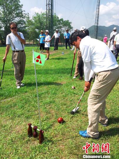 費海英,這個來自商丘師范學院的姑娘,拿起球桿,對著球門揮桿,球擦過球門。在擦了擦臉上的汗后,再次瞄準,揮桿,球進了,球杯轉了一圈。9月5日,中國國際木球公開賽暨“海峽杯”兩岸青年木球邀請賽在浙江奉化開賽。木球運動創始人翁明輝希望,這項運動能夠促進兩岸之間的交流。
