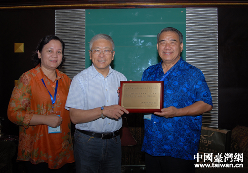雙方互贈禮物。(上海市臺聯 王茜 攝)