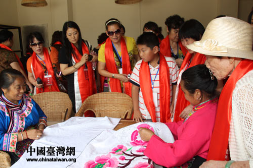參觀羌繡手工作坊(中國臺灣網(wǎng) 楊永青 攝)