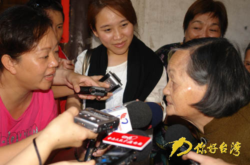 溫公祠內(nèi)居住的長者接受兩岸媒體采訪。(你好臺灣網(wǎng) 陳黎琴 攝)