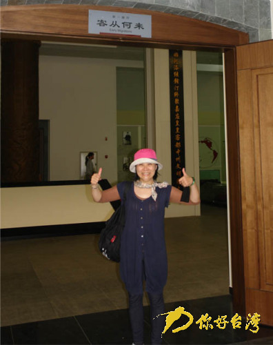 臺灣新客家廣播電臺主持人張美鳳對客家博物館豎起大拇指。(你好臺灣網(wǎng) 陳黎琴 攝)