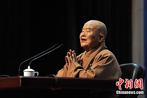 4月5日,星云大師是于廈大九十周年校慶之際,前來廈大參加“走近大師”系列講座,并發表“空有之關系”的演講。中新社發 王東明 攝