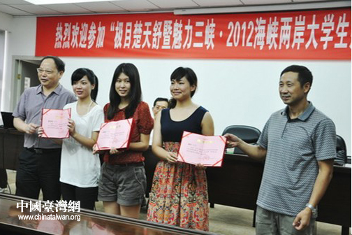 黃應平向臺灣師生介紹了三峽大學的現有規模、院系設置等情況,并回顧了近些年來三峽大學與臺灣高校開展教學交流情況。開營儀式上,還為“2011·紀念辛亥革命一百周年海峽兩岸大學生征文”活動10名獲獎者頒發了獎品;兩岸的師生還互贈了禮品,開營儀式簡短、熱烈。