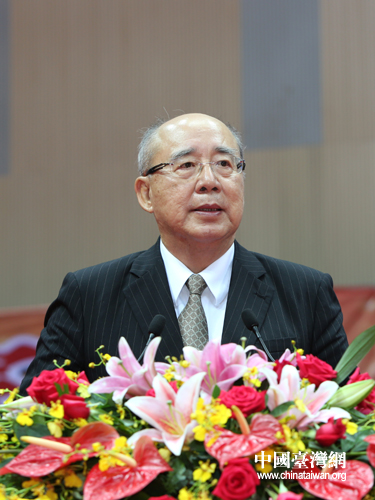 首屆客家文化藝術節23日在梅州開幕,圖為吳伯雄致辭(中國臺灣網發 高訊 攝)