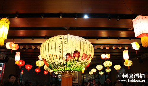 2013臺胞元宵祈福燈會于2月23日農(nóng)歷正月十四在京舉行,活動現(xiàn)場懸掛著兩岸書畫家手繪的百余個燈籠,美輪美奐!(中國臺灣網(wǎng) 楊永青 攝)