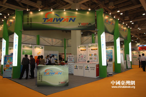 走進(jìn)展覽中心,臺灣物聯(lián)應(yīng)用專區(qū)展臺便映入記者的眼簾(中國臺灣網(wǎng) 陳寧 攝)