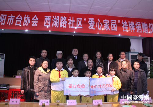 中國(guó)臺(tái)灣網(wǎng)12月19日貴陽(yáng)消息 日前,貴陽(yáng)市臺(tái)協(xié)會(huì)南明區(qū)西湖路社區(qū)“愛(ài)心家園”掛牌成立。貴陽(yáng)市委統(tǒng)戰(zhàn)部副部長(zhǎng)、市委臺(tái)辦主任李靜,貴陽(yáng)市委臺(tái)辦副主任劉筑琪,南明區(qū)委常委、組織部長(zhǎng)楊俊基及西湖路辦事處相關(guān)領(lǐng)導(dǎo)等出席了掛牌及捐贈(zèng)儀式。