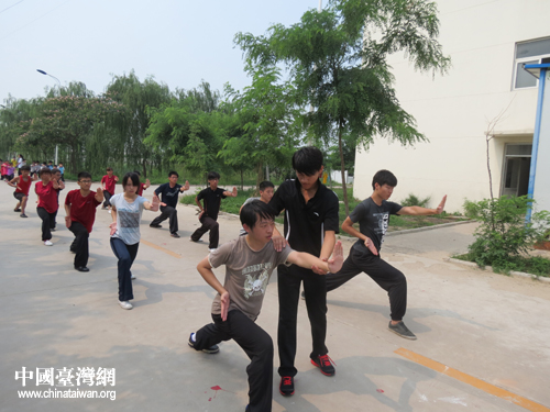 中國臺灣網7月30日壽光消息 日前,來自臺灣中華武術總會、臺北市士林區武術協會、彰化縣武術協會、臺北湖田小學的青少年朋友們在山東壽光少林武術院內,跟著少林武術院的教練們一招一式認真學起了少林功夫,與少林武術院的學員們切磋武藝、交流心得,為第四屆魯臺青少年武術文化交流活動的正式開幕和武術交流大賽做準備。