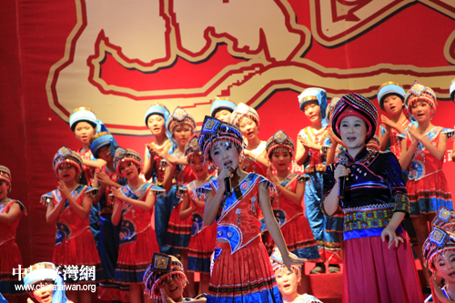 恩施市山民歌匯25日晚間上演,圖為臺灣少數民族代表登臺表演。(中國臺灣網 楊麗 攝)