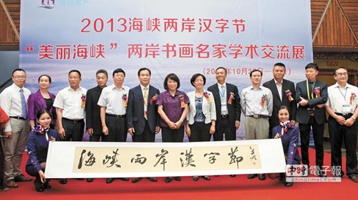 中新網(wǎng)10月31日電 據(jù)臺灣《旺報》報道,2013海峽兩岸漢字節(jié)暨美麗海峽兩岸書畫名家學(xué)術(shù)交流展,日前在廈門中華兒女美術(shù)館開幕,本屆漢字節(jié)的重頭戲年度漢字征集活動將于11月開始,采取讀者推薦與各界征集相結(jié)合的辦法,經(jīng)過兩岸民眾共同投票,最能代表2013年度的漢字將于12月底在臺北揭曉。