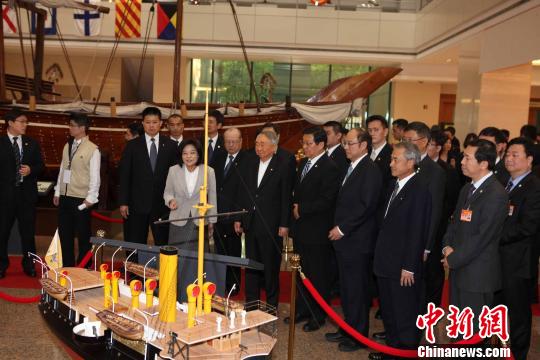 在張榮發基金會一樓,陳德銘一行還參觀了珍貴的清代船只模型。(完)