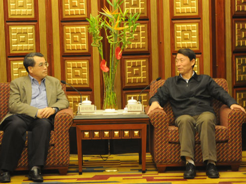 3月25日,四川省委副書記李崇禧(右)在成都錦江賓館會見了來川訪問的亞洲最大果蔬汁飲料生產商臺灣佳美集團董事長游昭明一行。圖片來源:四川省臺辦
