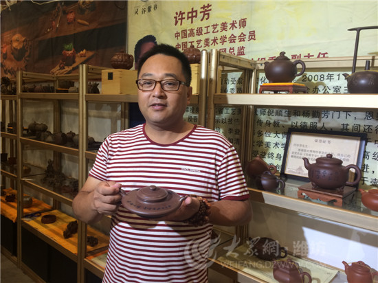 許中芳告訴記者,他與濰坊的會展結緣數(shù)年,大大小小的展會也參加了不少,“魯臺會我是第一次參加,我覺得藝術是想通的,也想跟臺灣的同胞們切磋一下。”許中芳說,今年的魯臺會自己的展位人氣很旺,他計劃在展會結束后,再策劃一次小型的紫砂收藏展,“希望更多的紫砂愛好者能聚到一起交流切磋。”