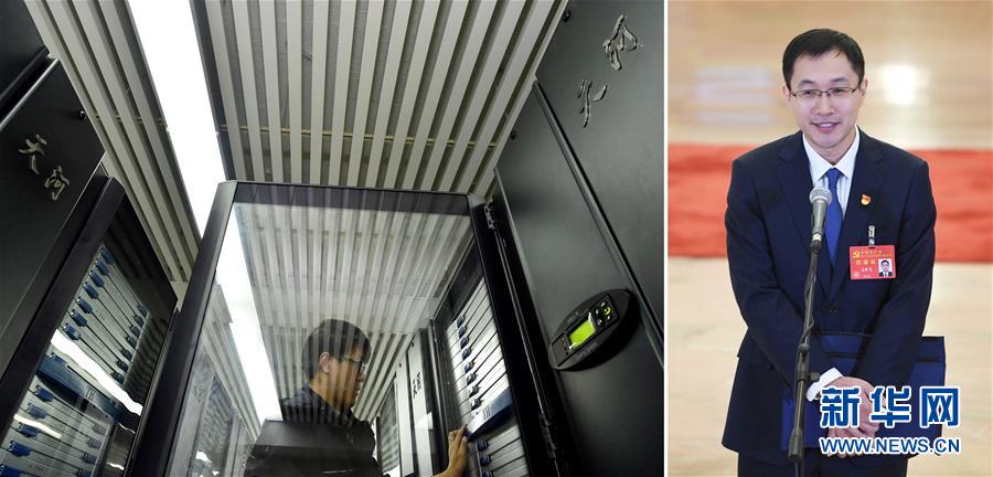 左圖:2月10日,國家超算天津中心工作人員在維護“天河一號”(新華社記者 岳月偉攝);右圖:10月19日,黨的十九大代表、國家超算天津中心應用研發部部長孟祥飛在北京人民大會堂接受采訪(新華社記者 王建華 攝)。