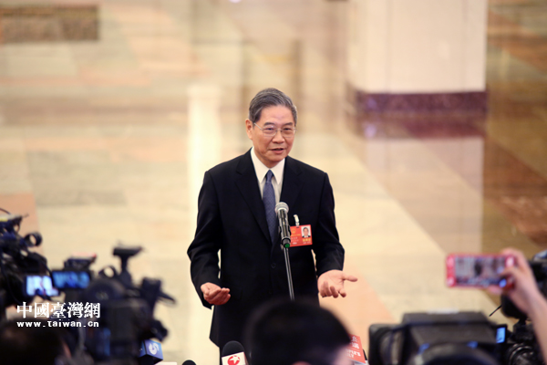 5日,十三屆全國人大一次會議在京召開,在大會開幕會后,中共中央臺辦、國務(wù)院臺辦主任張志軍在“部長通道”接受記者采訪。(中國臺灣網(wǎng) 何建峰 攝)