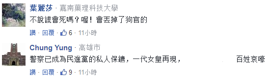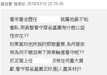 葉俊榮的一番話,也把臟水潑到了警察機關頭上。于是主管警務的“警政署署長”陳家欽也得出來。陳家欽稱,絕對沒有公器私用(一樣的套路,睜眼說瞎話,死不認賬),這樣的勤務是普遍性,沒有針對性。(為蔡父守墓是普遍性勤務?)也難怪網友會有這樣的回應: