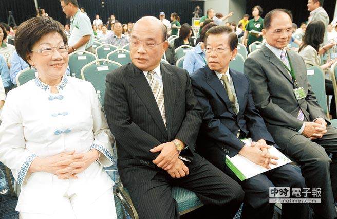 民進黨“四大天王”為前臺北縣長蘇貞昌(左2)與前臺灣地區副領導人呂秀蓮(左1)、兩位前“行政院長”謝長廷(右2)與游錫堃(右1)。(圖片來源:臺灣《中時電子報》)