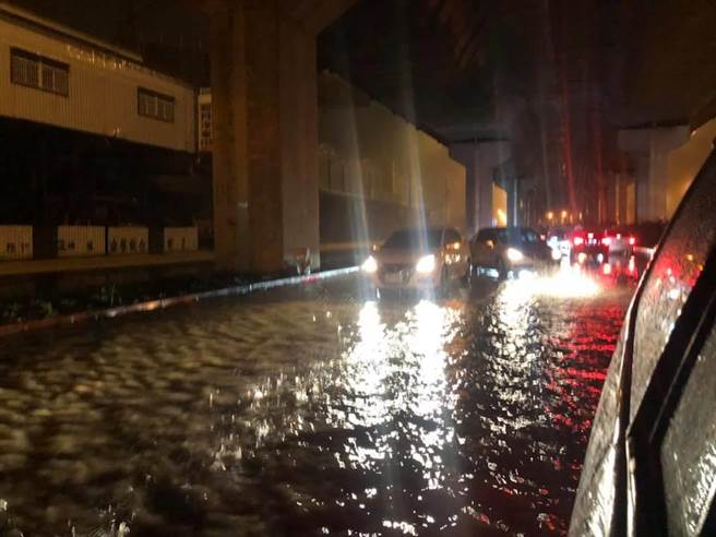 仁武、大社地區淹水,車輛難以通過。(圖片來自臺媒)
