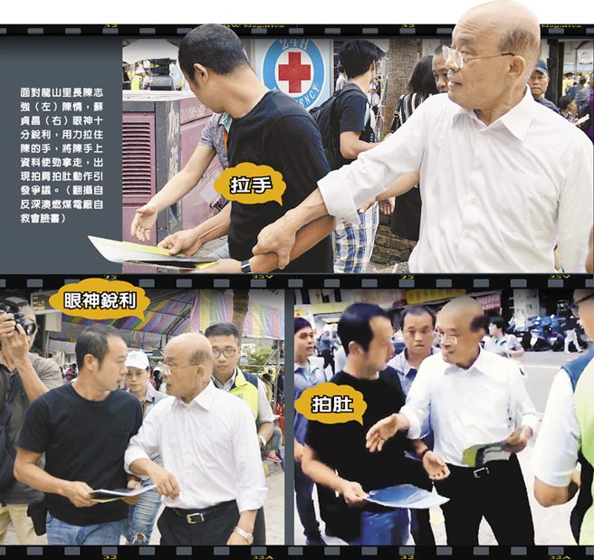 據(jù)報道,蘇貞昌23日上午在瑞芳成立競選總部,卻在陳志強(qiáng)上前遞交“深澳電廠健康風(fēng)險評估報告”時,出現(xiàn)拍肩、拍肚等動作,還向陳表示“謝謝你唷!祝福你喔!我們一起加油”,但隨即匆匆離去。蘇此舉引發(fā)爭議,雖然當(dāng)晚蘇辦發(fā)出新聞稿表示,“在拿資料的過程中,如果因為急促中聲音大,或碰觸到他讓他覺得不舒服,誠心向他致歉”,但卻未獲陳志強(qiáng)的原諒,引發(fā)外界抨擊。