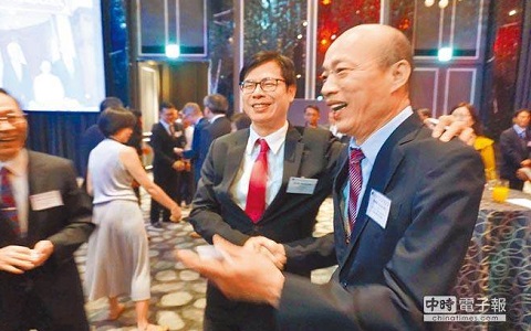 國(guó)民黨高雄市長(zhǎng)參選人韓國(guó)瑜(右)與對(duì)手陳其邁(左)。(圖片來(lái)自臺(tái)媒)
