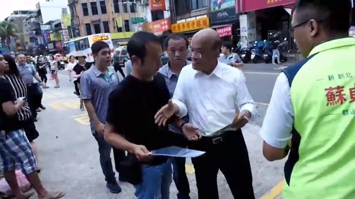 民眾陳情卻被蘇貞昌“拍肩拍肚”,引發(fā)爭議。綜合臺灣“東森新聞云”、《聯(lián)合報》報道,陳志強24日出面還原現(xiàn)場,他表示,自己是收到蘇貞昌發(fā)來的邀請函,前往競選總部的成立大會,希望有機會把反深澳的聲音當面告訴蘇。他說,“短短十米,他很用力拍我的肩,拍肩手指應該不會用力吧?他手是拱起來的,他一直要握我的手,又用力把我的手甩掉。”