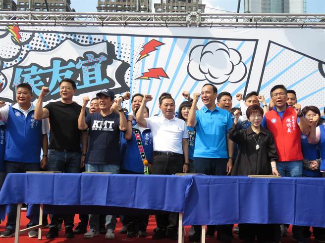 馬英九、周錫瑋、洪秀柱、朱立倫、侯友宜等先后按下手印,象征團結、一棒接一棒,現場“凍蒜(當選)聲”此起彼落。