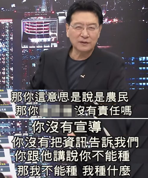 聽完林聰賢這番話,臺灣資深媒體人趙少康顯然不淡定了,他表示,民進黨當局不做事先的宣導,也沒有分享相關資訊,只是一句輕描淡寫的“聰明種”,就想要把責任推給農民嗎?
