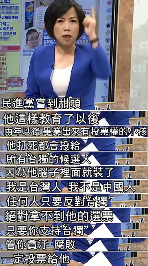 聽聽,蔡當(dāng)局自己不認(rèn)祖宗也就算了,現(xiàn)在竟還把這心思動到了臺灣學(xué)生身上,當(dāng)然,這也難怪,臺灣年輕世代可是被蔡英文引以為傲的奉為“天然獨(dú)”的。臺灣政論節(jié)目主持人黃智賢對此就指出,民進(jìn)黨之所以會這樣明目張膽的改歷史課綱,就是因?yàn)椤皣L到甜頭”,直言蔡當(dāng)局如此教育的后果就是,兩年以后,這些畢業(yè)出來有投票權(quán)的小孩“打死都會投給所有‘臺獨(dú)’候選人”!