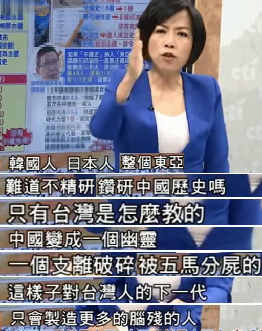 但對于民進(jìn)黨而言,似乎這樣還不夠,所以他們爽性將“中國史”整個拿掉,黃智賢為此痛批,在韓國人、日本人,甚至整個東亞都在精研中國歷史的時候,臺灣的教育竟是將“中國變成一個幽靈”,如此只會造成臺灣下一代“有更多腦殘的人”。