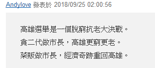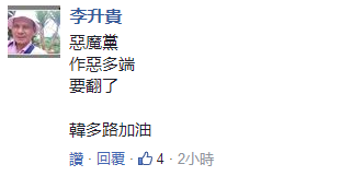 有網友力挺韓國瑜,為他打氣加油,當然也沒忘了撒一把陳其邁的家族黑料: