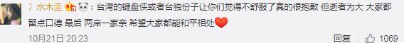 而面對小部分不理性的聲音,有網友也呼吁大家“不要變成網絡暴民”、“逝者為大”、“兩岸一家親”;