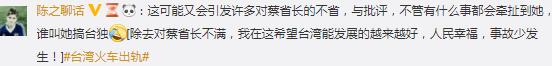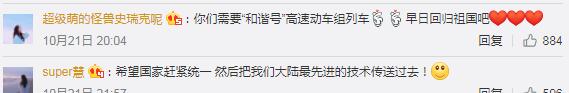 還有大陸網友聽說出事列車是日本造,不禁喊話對岸的兄弟“用咱自己家的(列車)啊”,同時還發出“早日回歸祖國吧”、“國家趕緊統一,這樣大陸就能把最先進的技術傳送過去啦”的呼喚;