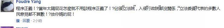 有人則是用當年的“太陽花”事件懟了蔡英文口中的“程序正義”之說;