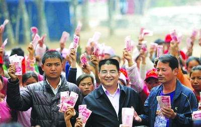 陳光標(biāo)是目前國內(nèi)最具爭議的慈善家。他去云南盈江、臺灣、日本等地,都喜歡親自給災(zāi)民派發(fā)紅包。不久前,他跟盈江地震災(zāi)民在一起,與每個災(zāi)民拿著200元錢合影留念的照片,再次引起議論紛紛。