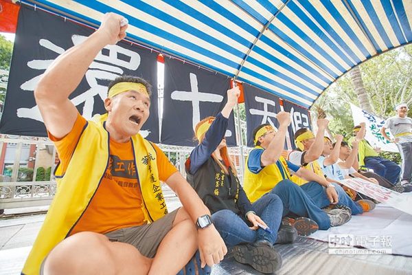 臺(tái)灣工人抗議“一例一休”(圖片來(lái)源:中時(shí)電子報(bào))