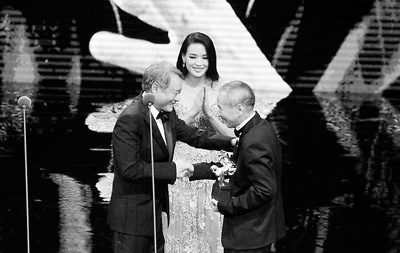 臺(tái)灣導(dǎo)演李安為侯孝賢頒獎(jiǎng),演員舒淇鼓掌祝賀。(資料圖片)