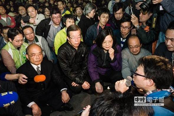 民進(jìn)黨幾位重要人物日前也出現(xiàn)在反服貿(mào)活動中。(圖片來源:臺“中時電子報”)