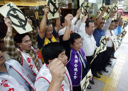 有分析認(rèn)為,陳情與請(qǐng)?jiān)覆⑽醇{入“游說法”,可能會(huì)使“游說法”存在“灰色地帶”。圖為島內(nèi)總工會(huì)2004年在“立院”前請(qǐng)?jiān)福螽?dāng)局支持勞工版的勞退條例。
