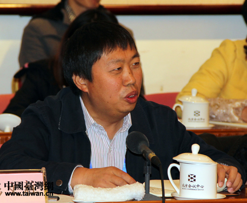 北京聯合大學臺灣研究院院長助理、臺灣政黨政治研究所所長李振廣在研討會上發言。(中國臺灣網 李杰 攝)