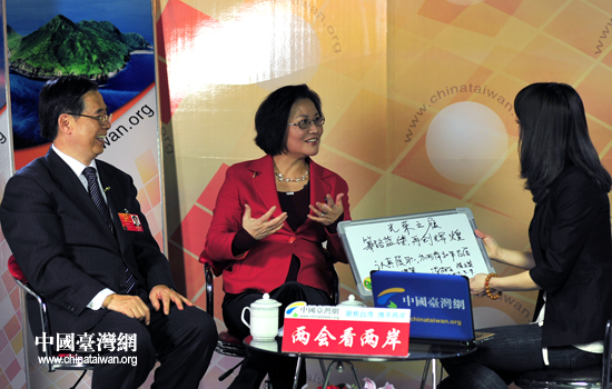 中國臺灣網3月11日北京消息 9日,正在參加十一屆全國兩會的臺籍代表陳蔚文、陳云英做客中國臺灣網,暢談履職感受。兩位代表分別寫下“認真履職,為兩岸和平發(fā)展獻計謀策”和“篳路藍縷、再創(chuàng)輝煌”的字句,并表示,無論能否于明年連任全國人大代表,都將繼續(xù)為兩岸關系發(fā)展、為臺胞權益盡綿薄之力。(記者 田云鵬)