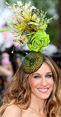 在5月的《欲望都市》倫敦首映禮上,Parker用這款十分富有戲劇色彩的孔雀羽毛帽子來搭配Alexander McQueen... |