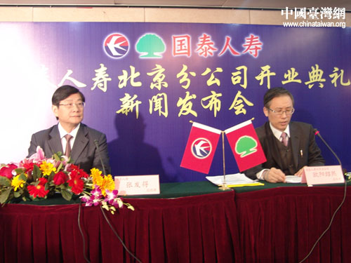 國泰人壽保險(xiǎn)有限責(zé)任公司北京分公司在京開業(yè),國泰人壽總經(jīng)理張發(fā)得,國泰人壽北京分公司總經(jīng)理歐陽紹熙主持開業(yè)典禮新聞發(fā)布會。(攝影:邵磌)