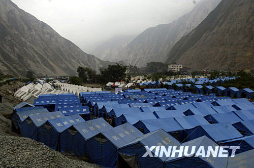 這是6月18日拍攝的汶川縣最大的緊急避險安置點——綿虒鎮(zhèn)板橋村緊急避險安置點。6月18日,四川汶川縣綿虒鎮(zhèn)板橋村安置點安置了5000多名從山上緊急撤離下來的群眾,以防范次生災害的威脅。由于汶川縣緊急避險采取“邊撤退,邊搬遷,先入住,后完善”的方法,這里的設施正在逐步完善,以期達到小區(qū)生活標準。 新華社記者 海明威 攝