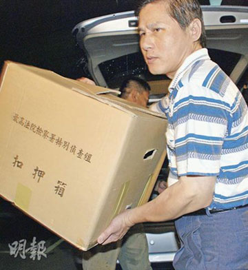 檢察官搜查陳水扁住處及辦公室,帶走電腦及相關資料。