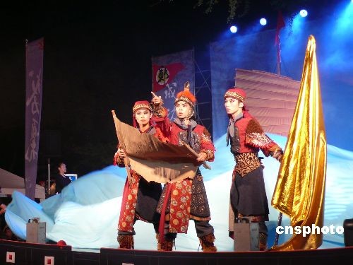 四月二十九日晚,臺灣鄭成功文化節(jié)在臺南延平郡王祠開幕。圖為廈門歌仔戲團(tuán)在開幕式上演出。“鄭成功文化節(jié)”是與媽祖文化節(jié)齊名的臺灣兩大文化盛事之一,迄今已進(jìn)入第八個(gè)年頭。二00九年鄭成功文化節(jié)的主題是“成功領(lǐng)航”。 中新社發(fā) 鄧敏 攝