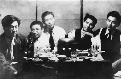 1937年,臺灣屏東佳冬蕭家后人蕭道應(yīng)(左一)與摯友聚餐商討籌組醫(yī)療服務(wù)團(tuán),返回大陸參加抗日戰(zhàn)爭,其曾祖父蕭光明是1895年組織鄉(xiāng)勇抗擊入侵日寇的客家領(lǐng)袖。新華社發(fā)