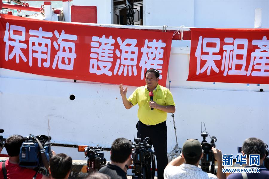 7月20日,活動發起人、泓海水產有限公司董事長鄭春忠在出發儀式上講話。當日,5艘臺灣漁船從屏東縣東港鹽埔漁港出發前往太平島。漁民們希望用實際行動向世人證明,太平島是島不是礁,祖先留下的財產不容抹殺。新華社記者宋振平攝