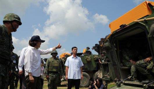 中國臺灣網8月26日訊 自22日拉開帷幕的臺軍“漢光32號演習”昨天(25日)來到了“高潮”。此次為期5天,號稱模擬“大陸猝然對臺灣發動攻擊”的攻防演練中,最大實彈科目“聯勇操演”,25日上午在屏東三軍聯訓基地登場。臺灣當局領導人蔡英文頭戴鋼盔、身著迷彩防彈背心,全神貫注看完整場演習。這也是蔡英文上任后,首度參與臺軍演習。她現場宣稱,臺軍就站在“攻擊發起線”上,請大家跟她一起往前沖。