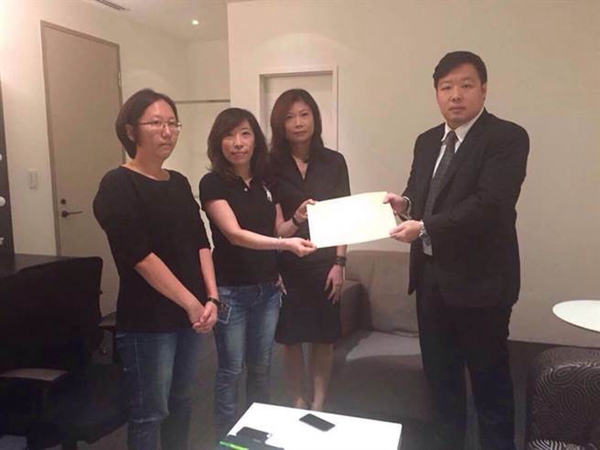 泰國“經貿辦事處”官員赴臺灣三立新聞臺呈遞聲明稿。(圖片來源:泰國“經貿辦事處”官網)